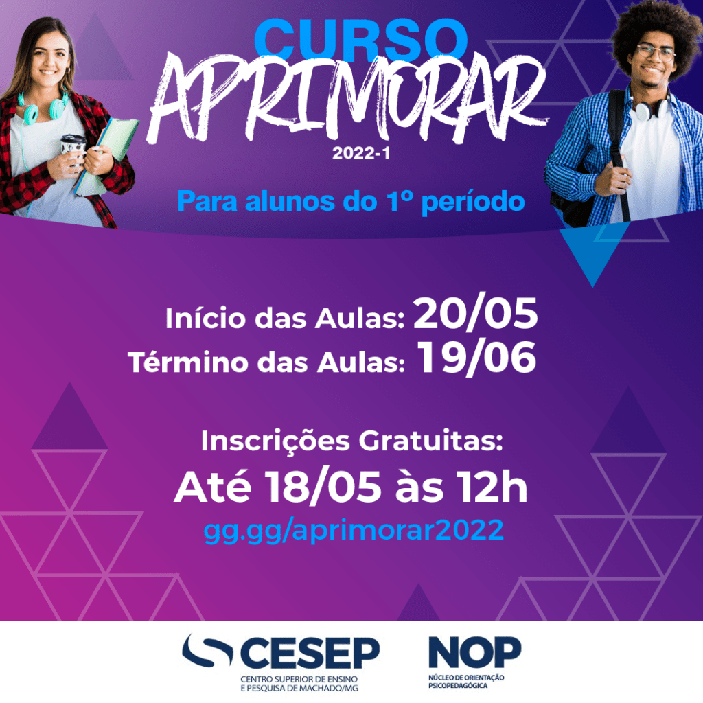 👩🏻🏫 É um curso gratuito de nivelamento para aperfeiçoar os conhecimentos relacionados às disciplinas de Língua Portuguesa e Matemática, ofertado aos alunos do 1º período.