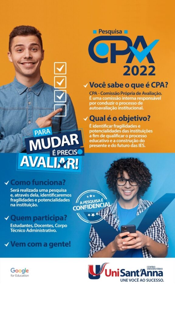 A CPA (Comissão Própria de Avaliação) quer ouvir você! 🧏🏾🧏🏻♀️ Saber o que você pensa e como avalia o seu corpo docente. É essencial para construirmos uma instituição ainda melhor para todos. Bora fazer a sua parte? 😎